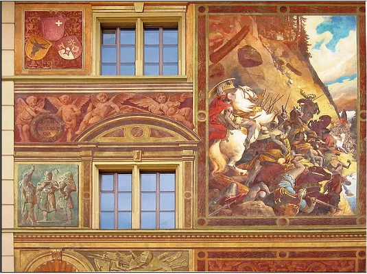 Il municipio di Schwyz in Svizzera, dipinto e decorato nel 1891 con colori Keim